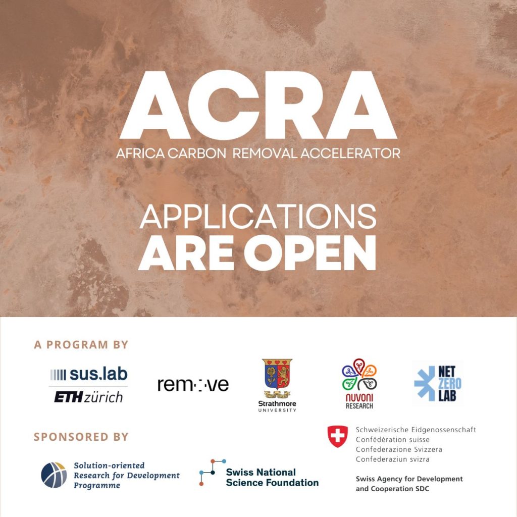 We are extremely excited to announce that applications are open for our newly established accelerator program ๐๐ณ๐ฟ๐ถ๐ฐ๐ฎ ๐๐ฎ๐ฟ๐ฏ๐ผ๐ป ๐ฅ๐ฒ๐บ๐ผ๐๐ฎ๐น ๐๐ฐ๐ฐ๐ฒ๐น๐ฒ๐ฟ๐ฎ๐๐ผ๐ฟ (๐๐๐ฅ๐), jointly developed by sus.lab | ETH, Net Zero Lab (Max Planck Institute for Innovation and Competition), Strathmore University, Nuvoni Centre for Innovation Research and remove as part of the SOR4D program.